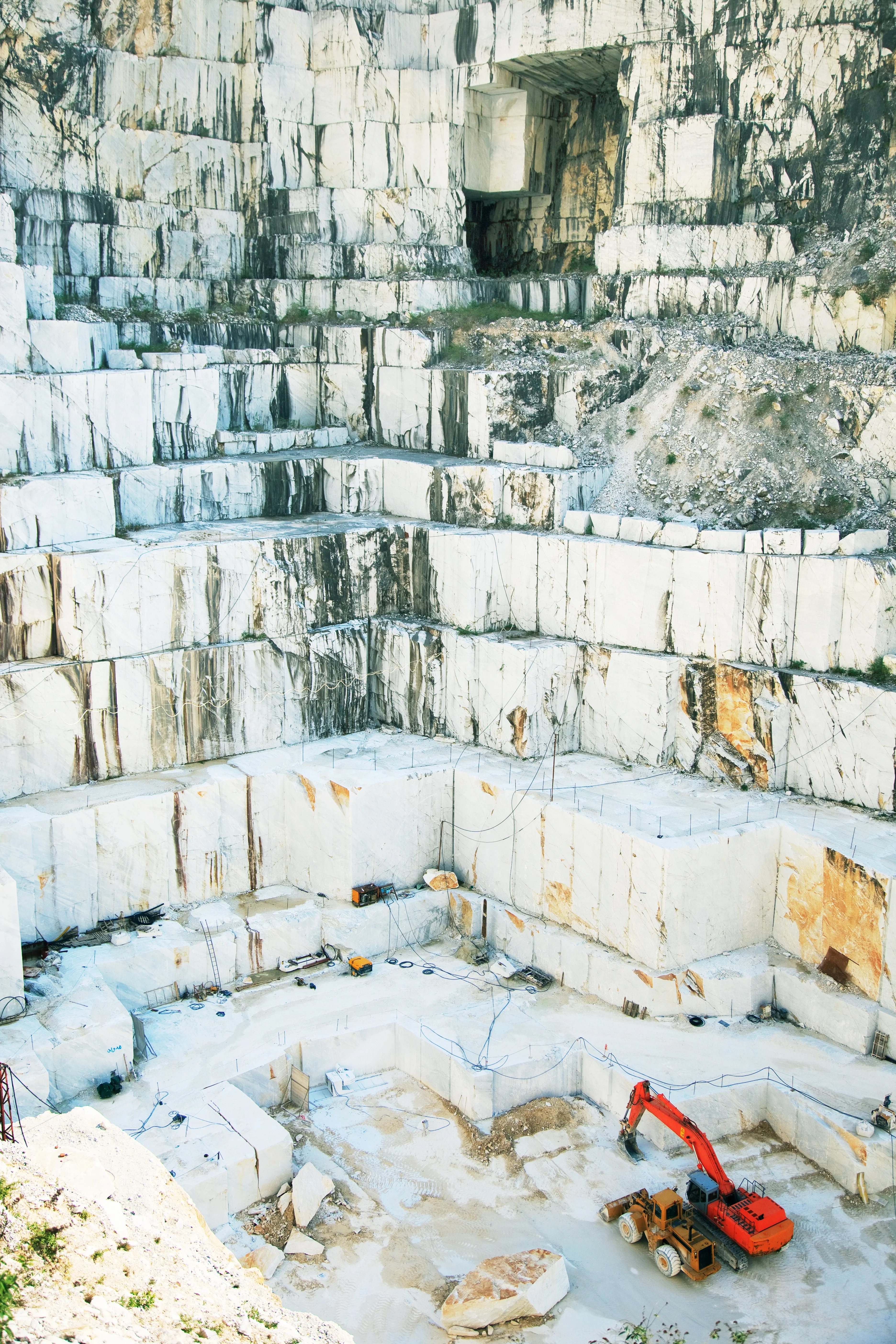 Marble sourcing begins with aerial surveys to locate premium quarry zones. Large blocks are extracted using hydraulic drills and diamond wire saws, ensuring precision and minimal waste. Water cools the cutting tools while removing debris. Carefully lifted by cranes, the blocks are transported for further processing, preserving their natural beauty and integrity for high-quality, luxurious marble products.