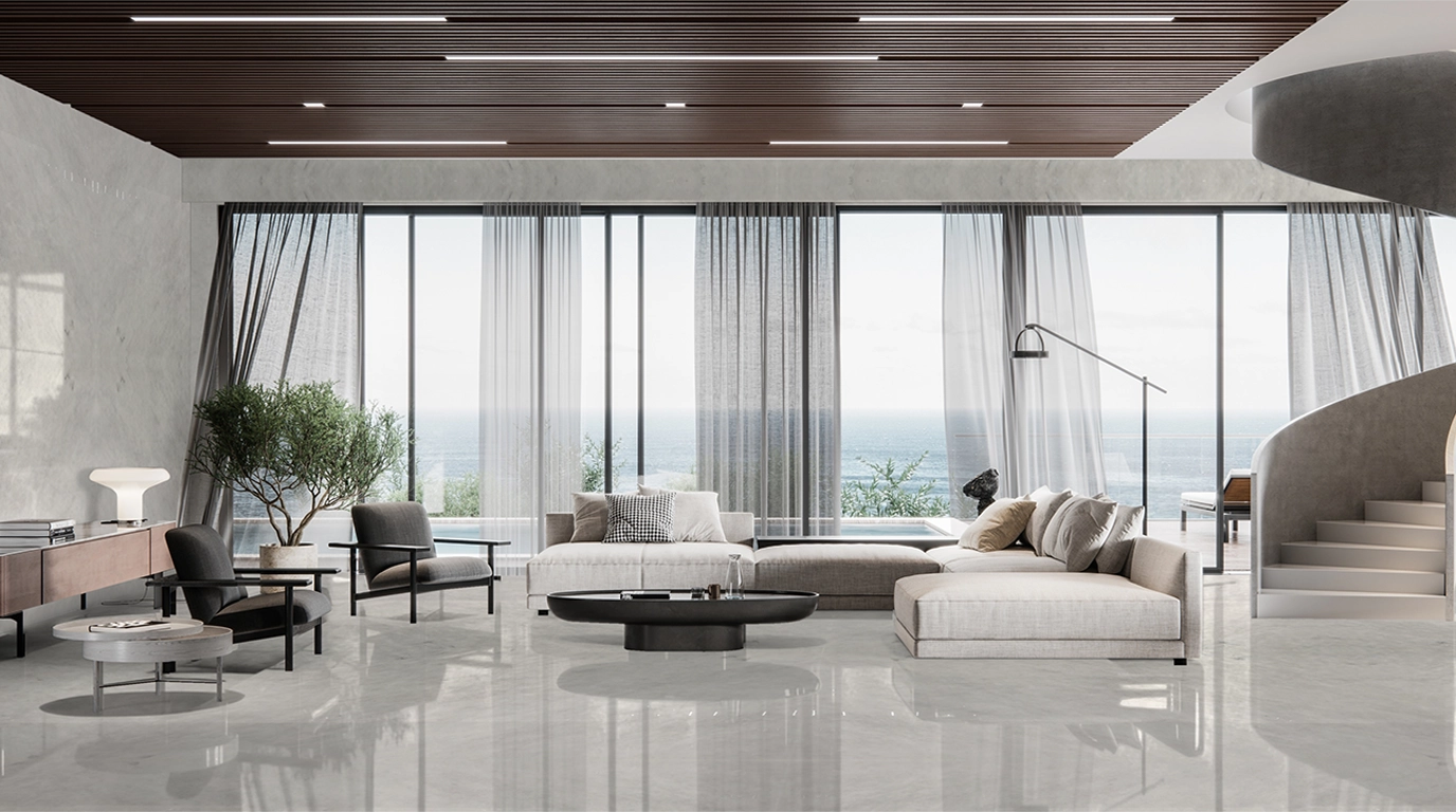 Arctic Haze is a pale, cool white marble defined by its low-contrast surface and muted tonal clarity. The stone feels distant and restrained, allowing light to flatten gently rather than reflect or diffuse. Arctic Haze is selected for interiors that favour minimal expression—working across floors, wall planes, and architectural surfaces where stillness, neutrality, and material understatement shape the spatial language.