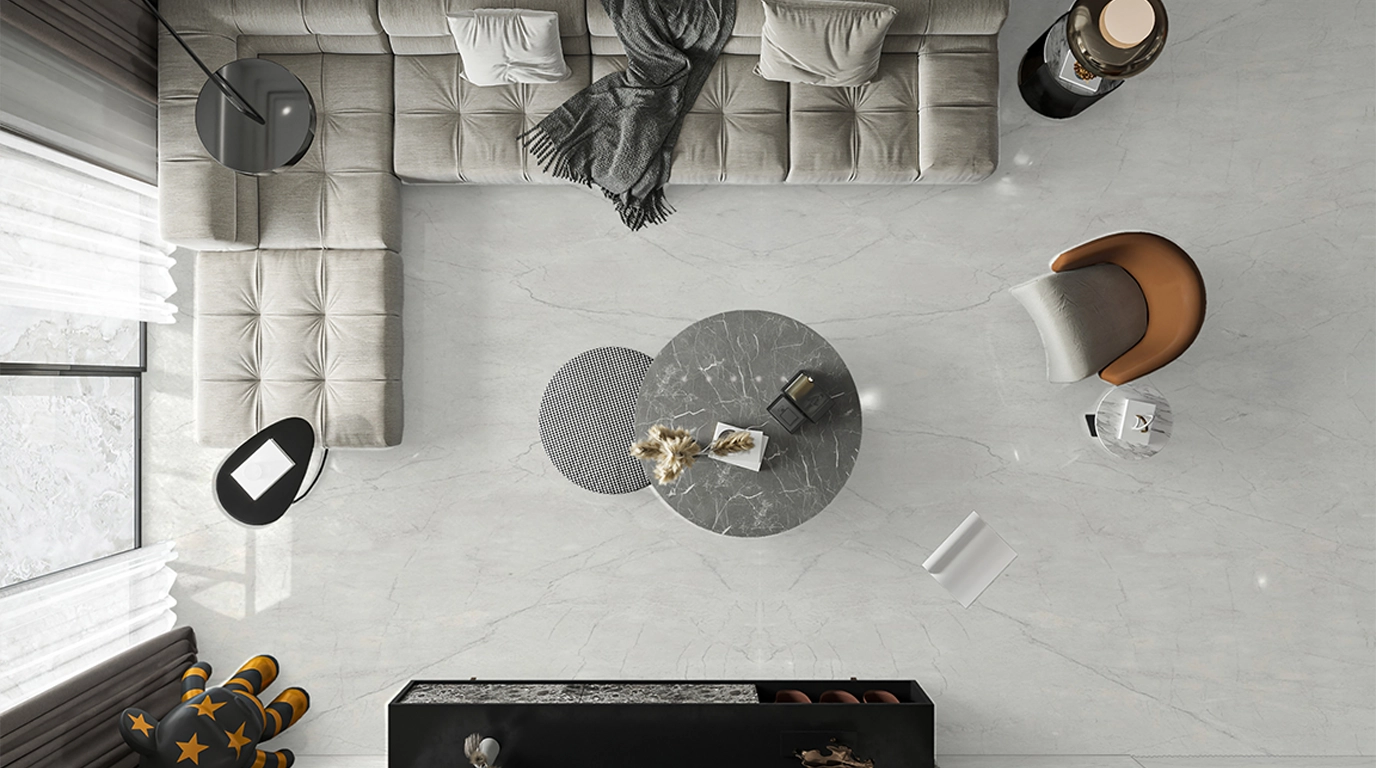 Olympus Snow delivers a crisp, elevated white surface that enhances spatial brightness. It is particularly effective in grand interiors, hospitality lobbies, and expansive residential spaces.