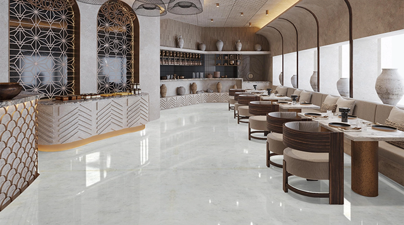 Polar Bloom is a cool, light-toned white marble where clarity opens gradually, much like a bloom in cold air. The surface carries a subtle softness beneath its crisp appearance, allowing light to spread evenly without glare. Polar Bloom is suited for flooring, wall planes, and architectural volumes where freshness, balance, and controlled brightness are essential—supporting interiors that feel calm, open, and quietly resolved rather than overtly minimal.