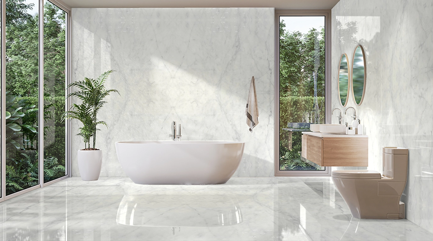 Polar Core presents a balanced white field animated by soft, vertical veining that moves quietly through the surface. The markings are diffuse rather than linear, giving the stone a gentle sense of depth without introducing visual noise. Its character feels cool, composed, and grounded—ideal for interiors that rely on material purity and subtle variation rather than contrast. Polar Core performs as a stabilizing element, bringing light and continuity to spaces designed with restraint and precision.